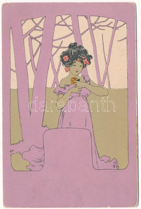 https://www.darabanth.com/en/39-Major-auction/39.1/Postcards/Art-postcards~16101/Girl-in-purple-Art-Nouveau-unsigned-Raphael-Kirchner-worn-corners~II2741997