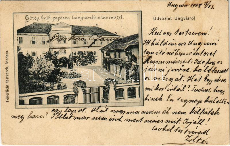 1908 Ungvár, Uzshorod, Uzhorod; Görög katolikus papárva leánynevelő és tanintézet. Feuerlicht testvérek kiadása / girl school (EK)