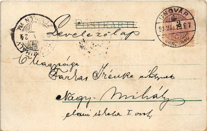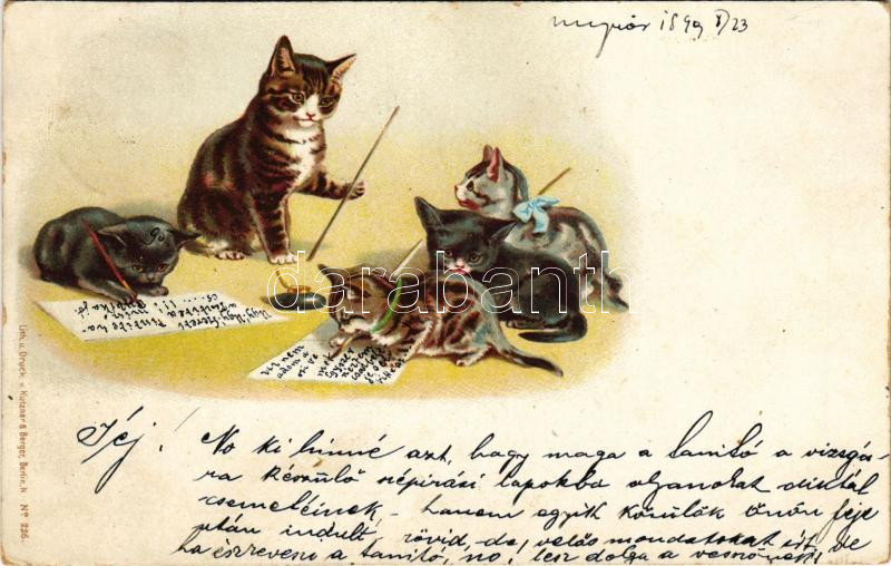 1899 (Vorläufer) Macska suli / Cat school. Kutzner & Berger No. 226. litho