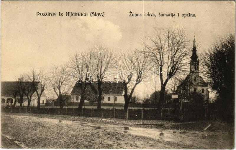 1910 Csótnémeti, Njemci, Nijemci; Pozdrav iz Nijemaca (Slav.), Zupna c... https://www.darabanth.com/en/39-Major-auction/39.1/Postcards/Croatia~16045/1910-Csotnemeti-Njemci-Nijemci-Pozdrav-iz-Nijemaca-Slav-Zupna-crkva-sumarija-i-opcina-A-~II2717120
