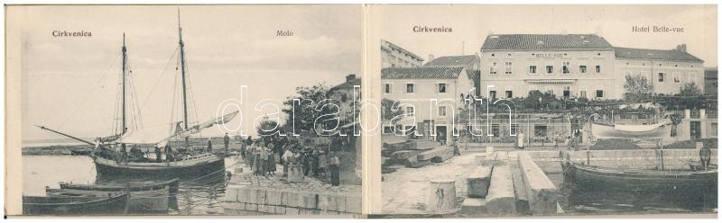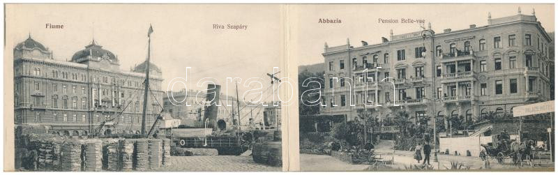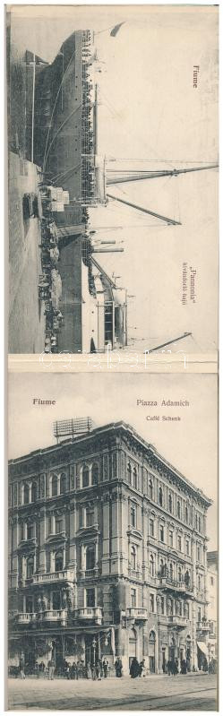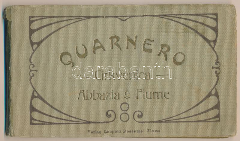 Quarnero, Kvarner Gulf; Crikvenica, Abbazia, Fiume. Belül Pannónia kivándorlási hajó, Schenk kávéház, Bellevue - nem képeslapos leporellofüzet 18 lappal / non-postcard leporello booklet with 18 cards (hajtásnál szakadt / bent til broken)