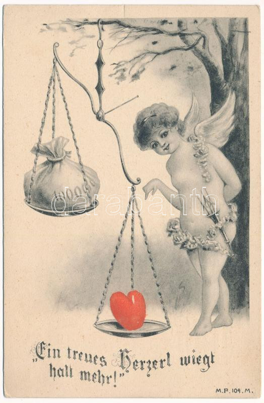 Ein trues Herzerl wiegt halt mehr! / Szerelmes üdvözlőlap / Love greeting card. M.P. 104. M. (EK)