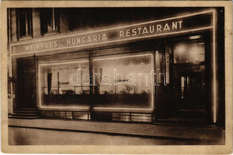 Description: Hamburg, Weinhaus "Hungaria" Restaurant Josef Gabor. Alsterdamm 36. / Hungaria magyar borház és étterem, vendéglő. Hungarika / Hungarian wine house and restaurant. Hungarica
