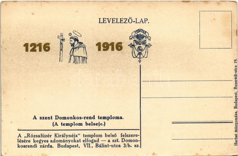 https://www.darabanth.com/en/39-Major-auction/39.1/Postcards/Hungary~16040/1216-1912-Budapest-XIV-Rozsafuzer-kiralyneja-templom-epitese-A-szent-Domonkos-rend-templom~II2727479