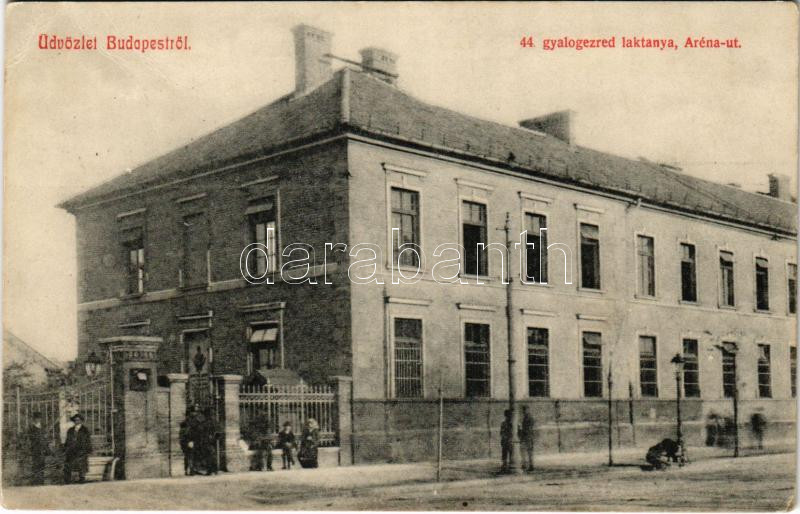 https://www.darabanth.com/en/39-Major-auction/39.1/Postcards/Hungary~16040/1911-Budapest-XIII-44-gyalogezred-laktanya-Albrecht-foherceg-laktanya-Arena-ut-ma-Lehel-utc~II2724315