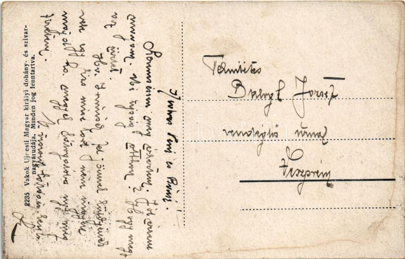 Budapest IV. Istvántelek, Clarisseum. Vakok Újpesti Magyar Királyi dohány- és szivarnagyáruda kiadása (EK)