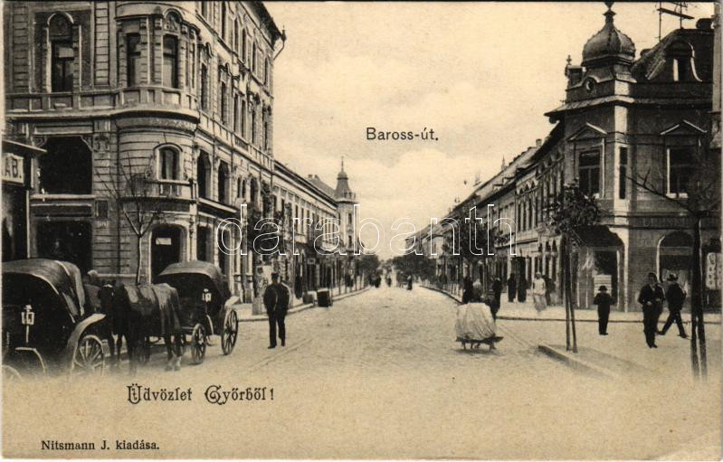 Győr, Baross út, lovashintók. Nitsmann J. kiadása (EK)