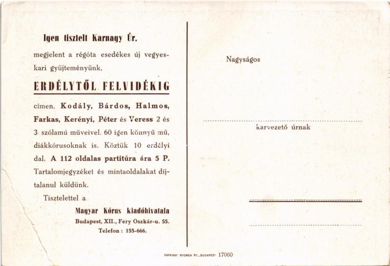 Erdélytől Felvidékig. Magyar Kórus kiadóhivatal irredenta reklám képes...