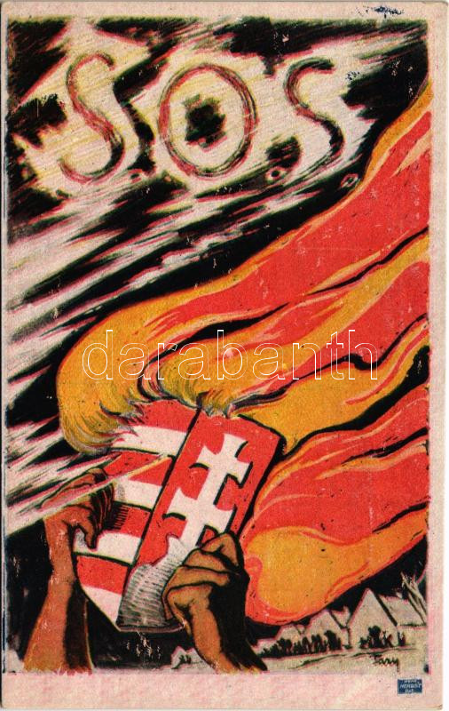 SOS! Kiadja Magyarország Területi Épségének Védelmi Ligája / Hungarian irredenta propaganda, Trianon, coat of arms s: Tary
