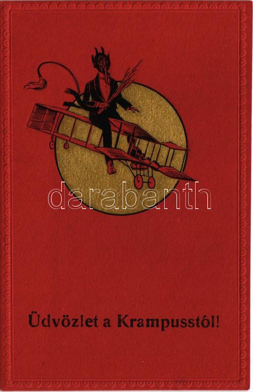 https://www.darabanth.com/en/39-Major-auction/39.1/Postcards/Krampus~16092/Udvozlet-a-Krampusztol-repulogep-Krampus-on-aircraft~II2728838