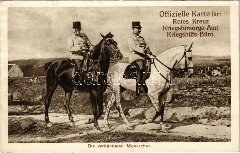 1915 Die verbündeten Monarchen. Offizielle Karte für Rotes Kreuz, Krei... https://www.darabanth.com/en/39-Major-auction/39.1/Postcards/Militaria~16087/1915-Die-verbundeten-Monarchen-Offizielle-Karte-fur-Rotes-Kreuz-Kreigsfursorge-Amt-Kriegshilfs-~II2738453
