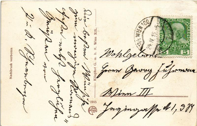 Description: 1915 Die verbündeten Monarchen. Offizielle Karte für Rotes Kreuz, Kreigsfürsorge-Amt Kriegshilfs-Büro. Kilophot 1915. / Ferenc József és II. Vilmos / Wilhelm II and Franz Jospeh, Viribus Unitis (Rb)