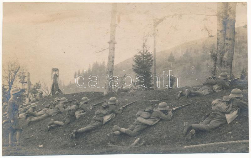 ~1918 Lázár kapitány az osztrák-magyar Sturm századával, rohamista katonák fedezékben / K.u.k. Sturmbaon / WWI Austro-Hungarian military, assault soldiers in cover. photo (fl)