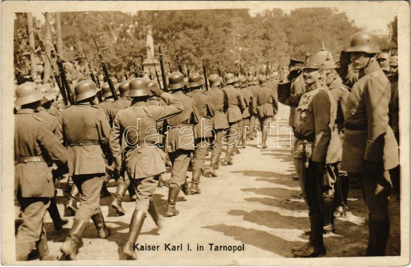 Ternopil, Tarnopol; IV. Károly fogadja a díszszázad katonáinak tisztel... https://www.darabanth.com/en/39-Major-auction/39.1/Postcards/Militaria~16087/Ternopil-Tarnopol-IV-Karoly-fogadja-a-diszszazad-katonainak-tisztelgeset-Postkartenverlag-~II2728806