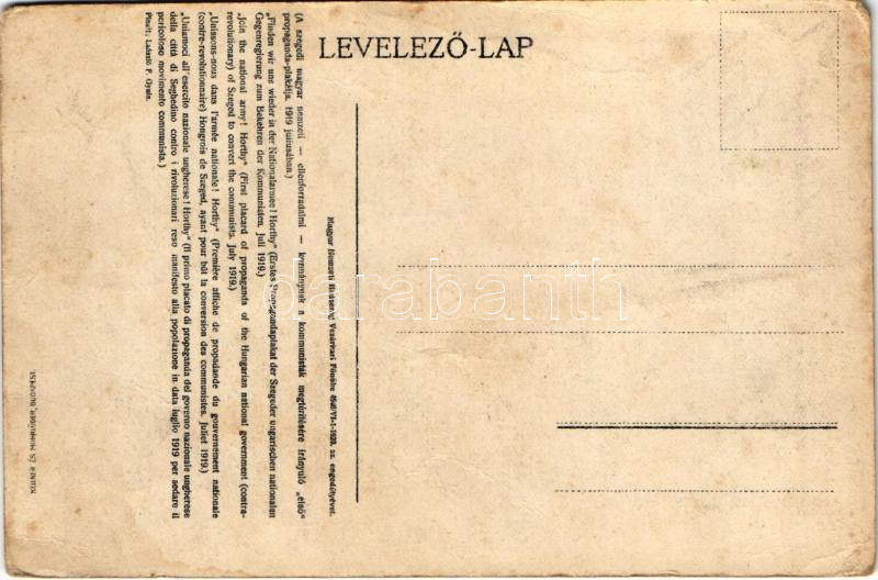 Egyesüljünk a nemzeti hadseregben! Horthy. A szegedi magyar nemzeti el... https://www.darabanth.com/en/39-Major-auction/39.1/Postcards/Propaganda-politics~16112/Egyesuljunk-a-nemzeti-hadseregben-Horthy-A-szegedi-magyar-nemzeti-ellenforradalmi-kormanynak-a-~II2726103