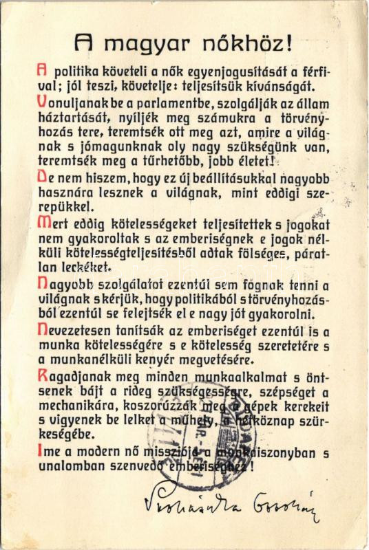 1921 A magyar nőkhöz! Prohászka Ottokár levele: A Modern nő missziója / The mission of the modern woman by Ottokár Prohászka (EK)