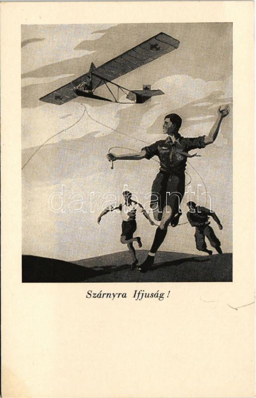 Szárnyra ifjúság! Cserkészek vitorlázó repülőgéppel. Kanitz és fiai / Hungarian scout boys with glider