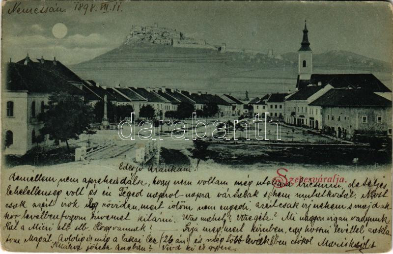 1898 (Vorläufer) Szepesváralja, Spisské Podhradie; Fő tér és vár este / main square and castle at night (EK)