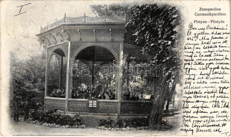 1901 Pöstyén, Piestany; Zenepavilon zenekarral / Curmusikpavillon / sp...