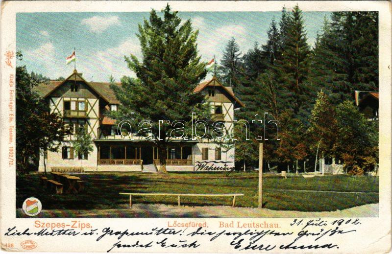 1902 Lőcsefüred, Lőcse-fürdő, Levocské Kúpele (Lőcse, Levoca); Fürdőház, nyaraló. Feitzinger Ede 1902/12. 438. Auto-Chrom / Bad Leutschau / spa, villa (EK)