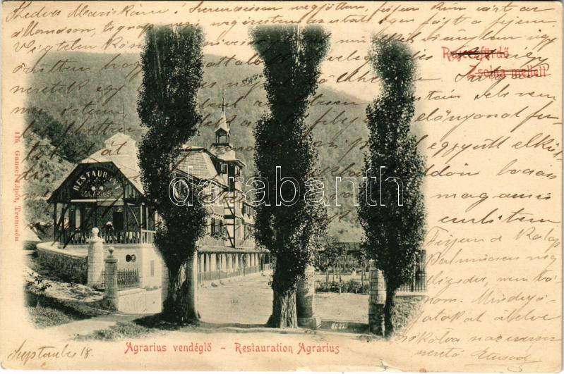 1903 Rajecfürdő, Rajecké Teplice (Zsolna mellett); Agrarius vendéglő, ...