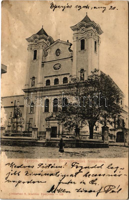 1904 Eperjes, Presov; Szent Ferenc rendiek temploma. Cattarino S. kiadása 159. / church (felszíni sérülés / surface damage)