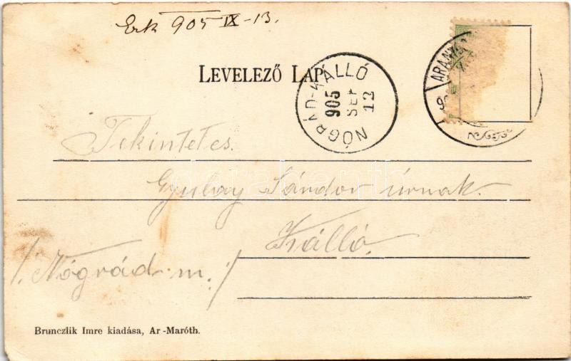 1905 Aranyosmarót, Zlaté Moravce; Római katolikus templom. Brunczlik I...