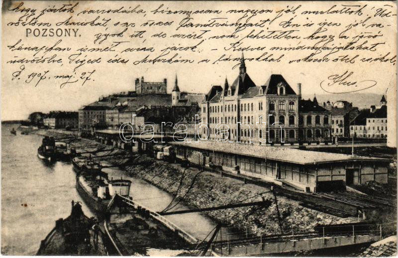 1907 Pozsony, Pressburg, Bratislava; rakparti iparvasút / quay industr...