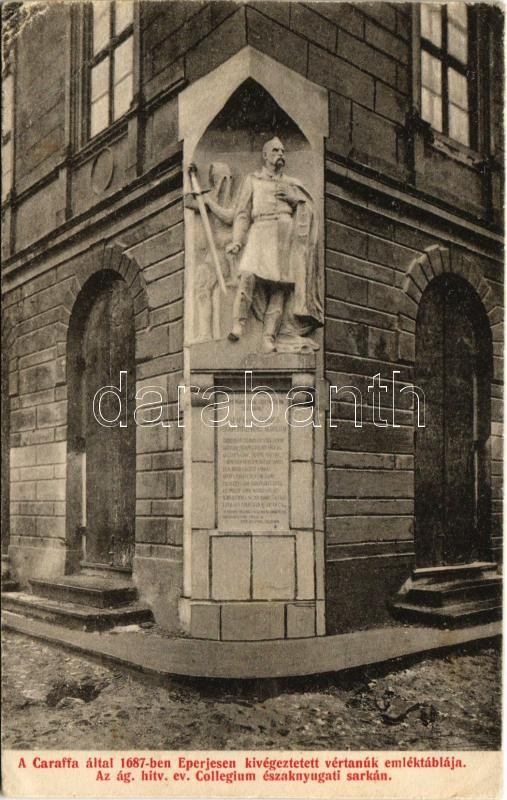 1908 Eperjes, Presov; A Caraffa által 1687-ben Eperjesen kivégeztetett... https://www.darabanth.com/en/39-Major-auction/39.1/Postcards/Slovakia~16042/1908-Eperjes-Presov-A-Caraffa-altal-1687-ben-Eperjesen-kivegeztetett-vertanuk-emlektablaja-~II2739094