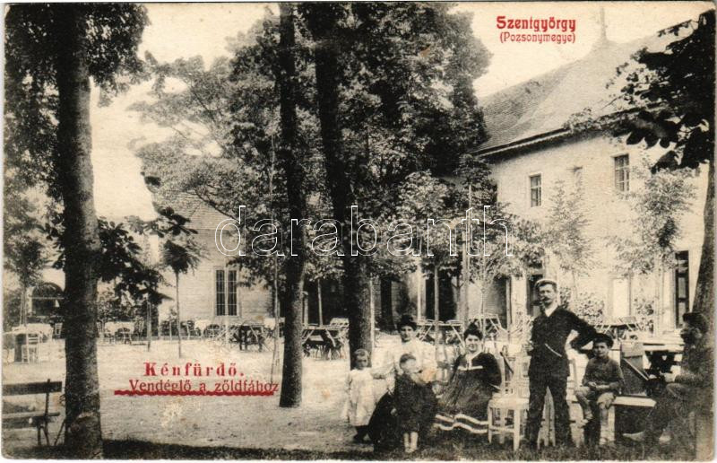 1909 Szentgyörgy, Sankt Georgen, Svaty Jur pri Bratislave, Sväty Jur (Pozsony); Kénfürdő. Vendéglő a Zöldfához, kert. K.B.B.D.A. 132. / spa, sulfur bath, restaurant garden (felületi sérülés / surface damage)