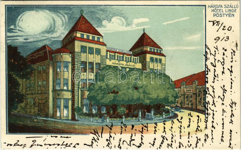 1913 Pöstyén, Pistyan, Piestany; Hársfa szálloda / Hotel Linde