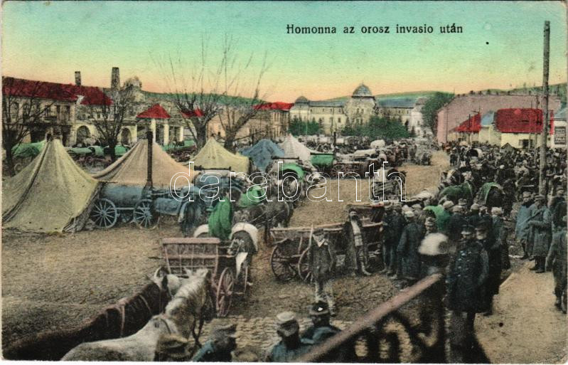 1915 Homonna, Humenné; Fő tér az orosz invázió után, felállított katon... https://www.darabanth.com/en/39-Major-auction/39.1/Postcards/Slovakia~16042/1915-Homonna-Humenne-Fo-ter-az-orosz-invazio-utan-felallitott-katonai-tabor-Ambrosi-M-~II2725803