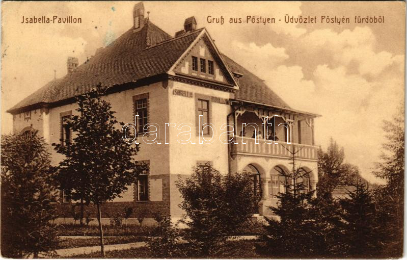 https://www.darabanth.com/en/39-Major-auction/39.1/Postcards/Slovakia~16042/1918-Postyen-Piestany-Isabella-pavilon-Schreiber-Gyula-kiadasa-pavilion-villa-EK-plus-Rotes-~II2740081