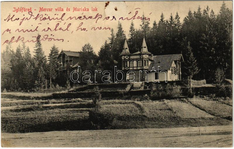 Iglófüred, Spisská Nová Ves Kupele, Novovesské Kúpele; Mercur villa és Mariska lak. Wlaszlovits Gusztáv kiadása / villas (lyuk / pinhole)