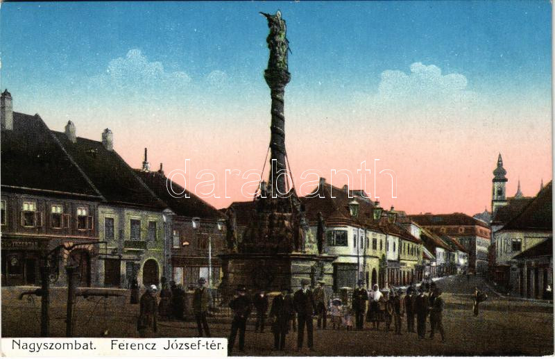 Nagyszombat, Tyrnau, Trnava; Ferenc József tér, Szentháromság szobor, ...