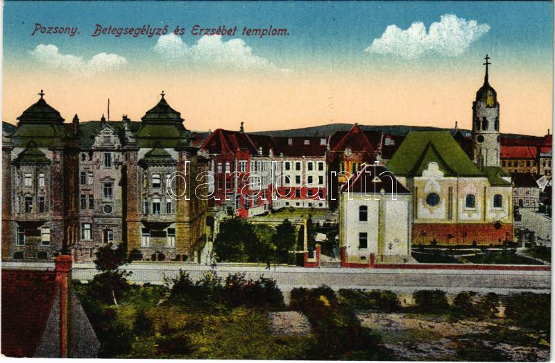Pozsony, Pressburg, Bratislava; Betegsegélyező és Erzsébet templom / m...