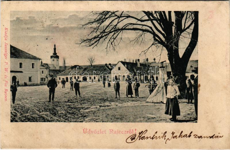 Rajec, Rajecz; Fő tér, kút. Jassniger P.W. és fia / main square, well ...
