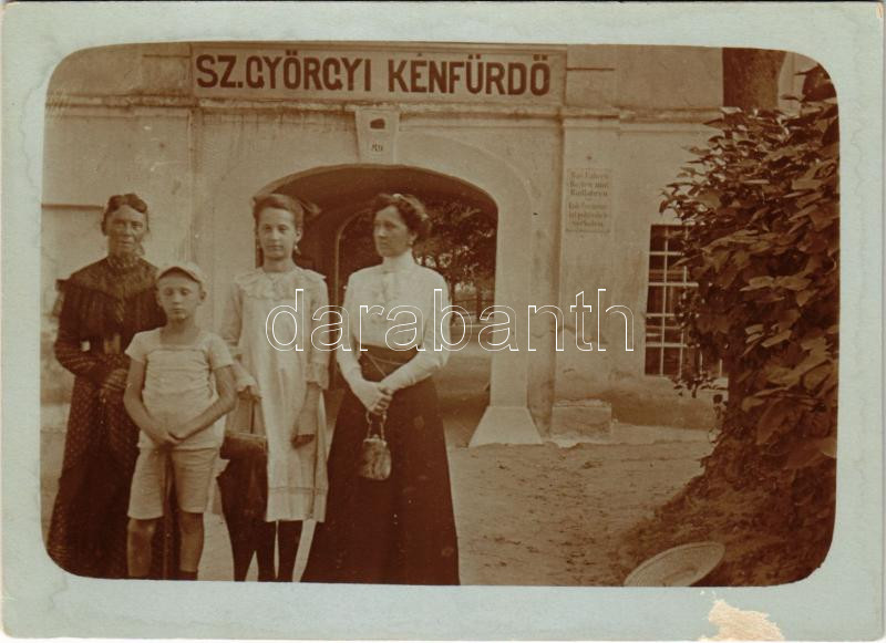 Description: Szentgyörgy, Sankt Georgen, Svaty Jur pri Bratislave, Sväty Jur (Pozsony); Hölgyek a Kénfürdő bejáratánál / spa, ladies at the entrance of the sulfur bath. photo (kis szakadás / small tear)