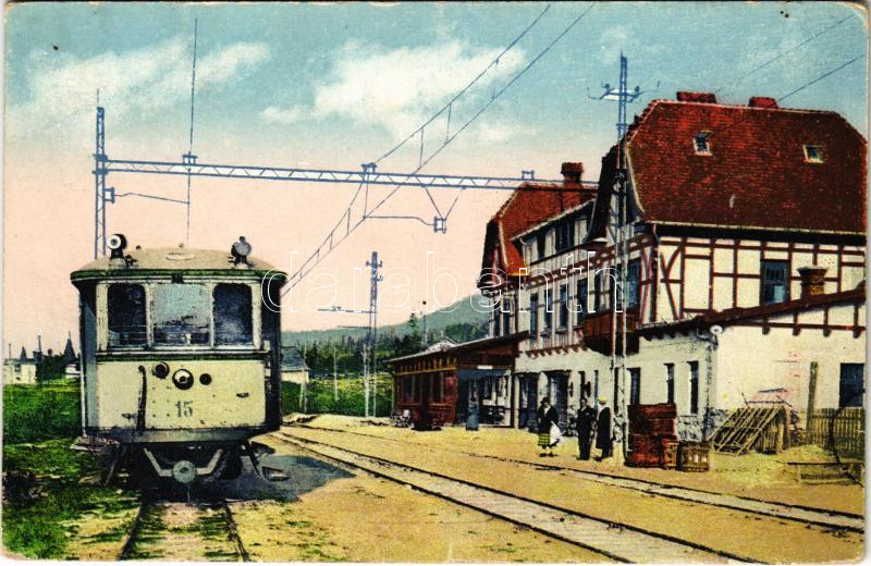 Description: Tátrafüred, Ótátrafüred, Altschmecks, Stary Smokovec (Magas-Tátra, Vysoké Tatry); Stanica elektr. dráhy / Elektr. Bahnstation / Villamos vasút állomás / tramway station, tram (EK)