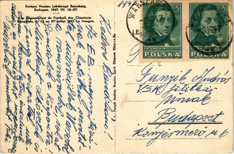1947 Budapest, Európai Vasutas Labdarúgó Bajnokság. Vasutas Sport Közp... https://www.darabanth.com/en/39-Major-auction/39.1/Postcards/Sport~16119/1947-Budapest-Europai-Vasutas-Labdarugo-Bajnoksag-Vasutas-Sport-Kozpont-Klosz-Football-Ch~II2730981