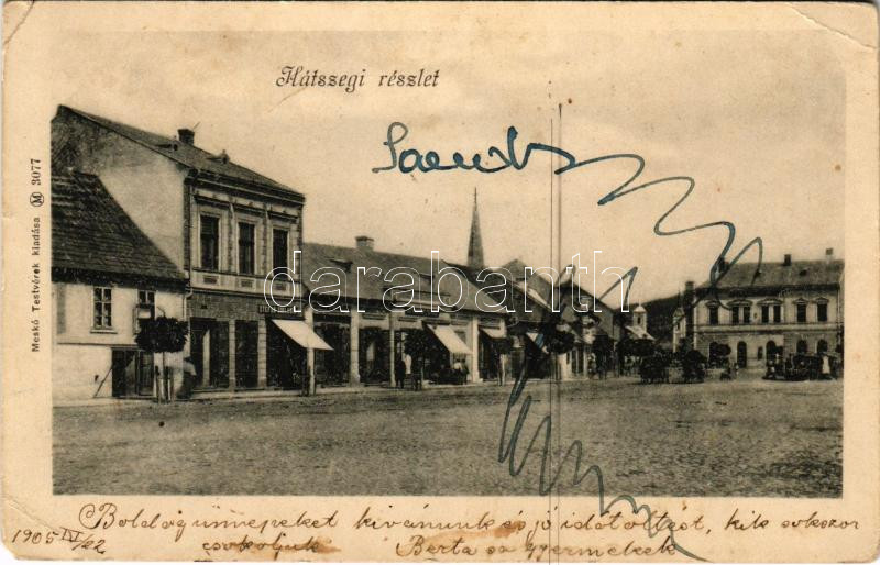1905 Hátszeg, Hateg; Fő tér, Stefan Sielariu üzlete. Meskó testvérek kiadása / main square, shops (EK)
