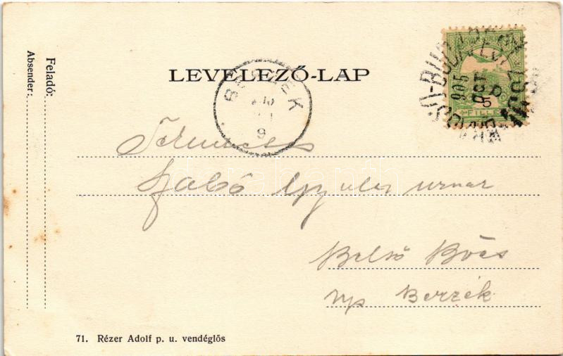 1905 Tövis, Teius; Vasútállomás, pályaudvar felső része, gőzmozdony, vonat. Rézer Adolf p.u. vendéglős kiadása / railway station, locomotive, train + "BRASSÓ-BUDAPEST 46. SZ." vasúti mozgóposta