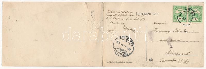 1908 Felsőbánya, Baia Sprie; látkép délről, templom. A Gutini választmány kiadása, két részes kihajtható panorámalap / general view, church. 2-tiled folding panoramacard (EK)