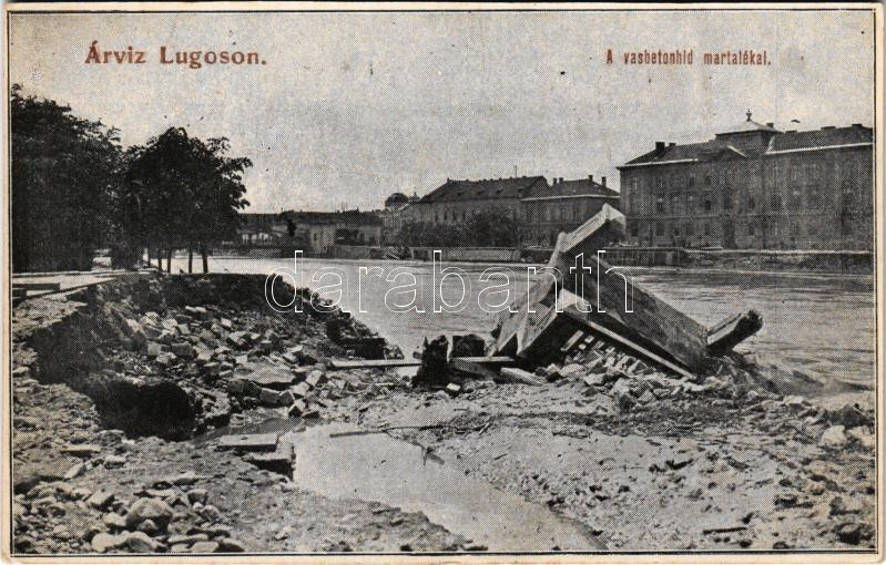 Lugos, Lugoj; árvíz pusztítása, a vasbetonhíd martalékai / flood, ruins of the bridge