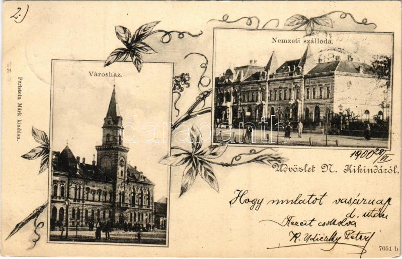 1900 Nagykikinda, Kikinda; Városház, Nemzeti szálloda. Perlstein Márk ...