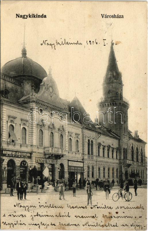 1906 Nagykikinda, Kikinda; Városház, Angner A. m. kir. dohány nagy és ...