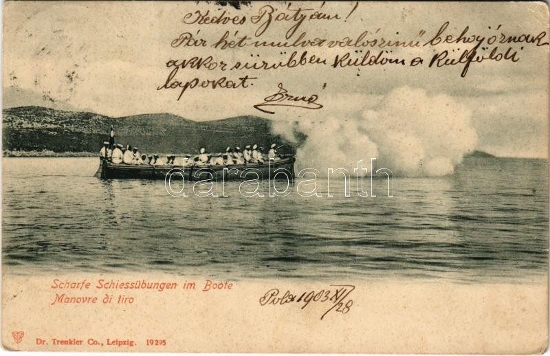 1903 K.u.k. Kriegsmarine Scharfe Schiessübungen im Boote / Manovre di ... https://www.darabanth.com/en/39-Major-auction/39.1/Postcards/Warship~16071/1903-Kuk-Kriegsmarine-Scharfe-Schiessubungen-im-Boote-Manovre-di-tiro-Osztrak-magyar-hadite~II2729457