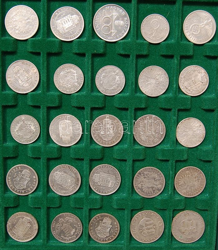 https://www.darabanth.com/en/39-Online-auction/39.0/Numismatics/~227/Hagyatek-tetel-regi-es-uj-foleg-magyar-27-db-fem-40-db-Ag-sok-jobbal-2-db-kazettas-penz~II76452