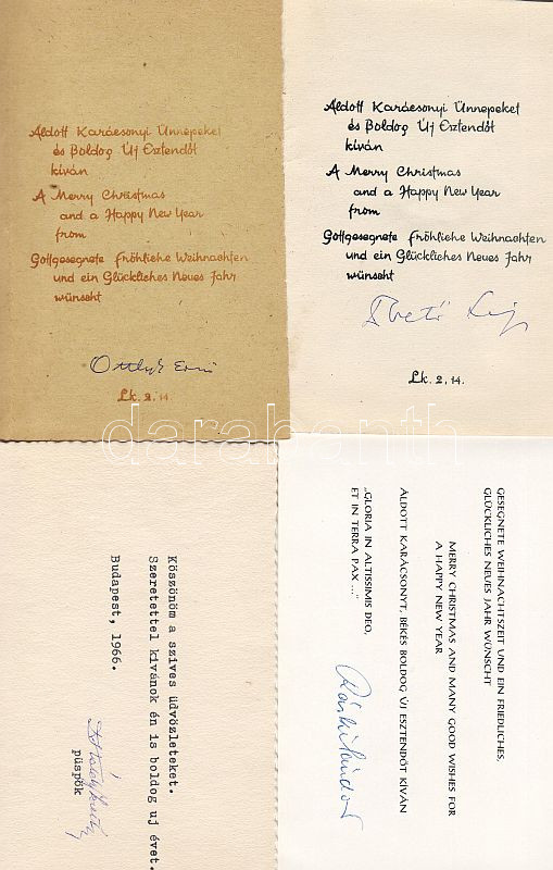 Ottlyk Ernő, Káldy Zoltán, Vető Lajos, Rásky Sándor evangélikus püspökök aláírásai vallásos üdvözlőlapokon