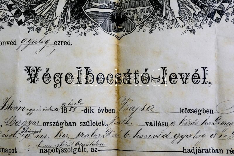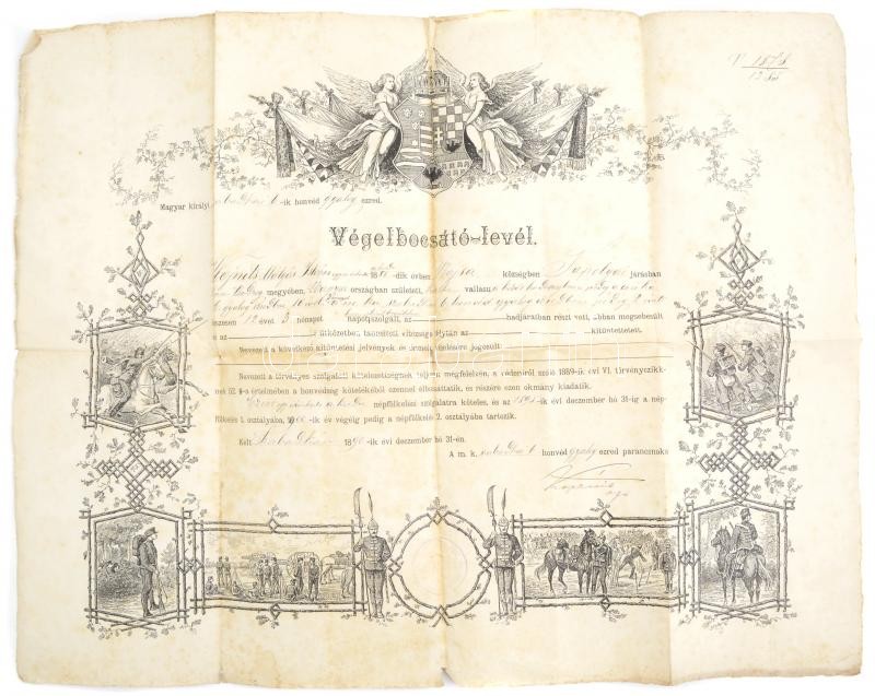 1890 Díszes, gazdagon illusztrált, címeres katonai végelbocsátó-levél ... https://www.darabanth.com/en/390-Online-auction/390.0/Art-and-other-collectibles/Military~500030/1890-Diszes-gazdagon-illusztralt-cimeres-katonai-vegelbocsato-level-a-m-kir-szabadkai-6-~II2350645